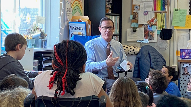 State Representative Will Snyder reads to Timberland Charter Academy scholars.