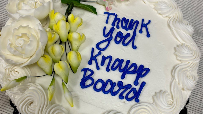 Knapp Charter Academy: Board members were presented with a special cake and beautiful pictures drawn by students.