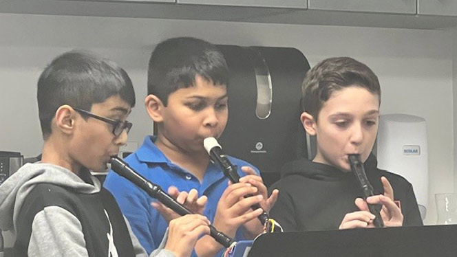 Achieve Charter Academy: Students shared special messages on cards and treated Board members to a mini-recorder concert.