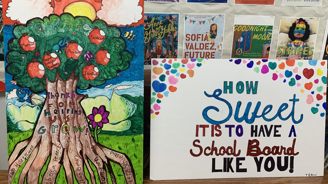 Southside Academy Charter School: Students created posters and craft projects to express their gratitude to members of the Board.