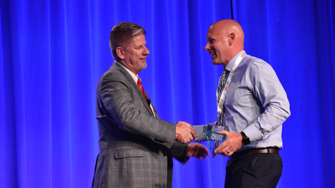 NHA Director of Safety Brian Guard congratulates the team from South Arbor after receiving their safety award.
