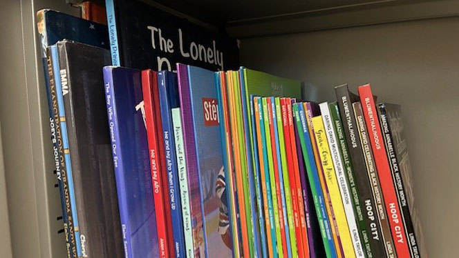 Ridge Park Charter Academy has a lending library where students can borrow a book to read.