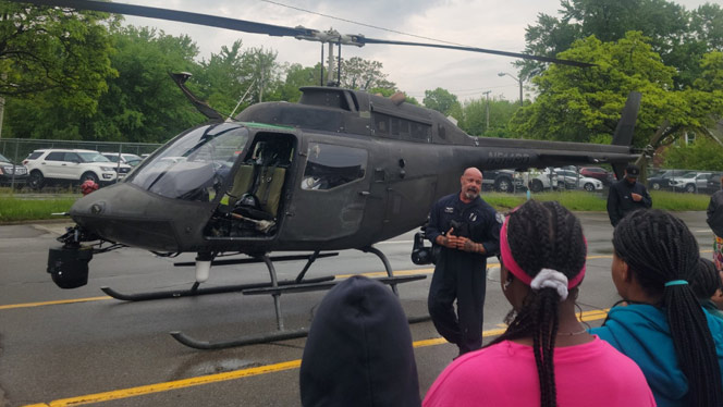 Regent Park scholars got an up-close look at how the Detroit Police Department’s aviation unit uses a helicopter in their work. 7 Mile was closed off for scholars to see this display.