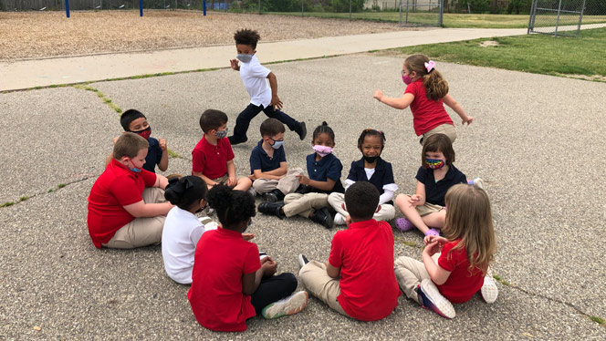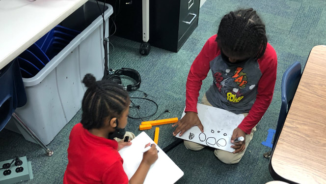 She believes cultivating these relationships between students starts on day one. She works with her class to learn about each other, their families, and what they like to do; a model that sticks throughout the year by sharing good news. Each child has the opportunity to share with a friend or with the class. Games are also used to build momentum with their interactions, and she purposefully mixes up groups and seating arrangements, so each student has time to meet new friends.