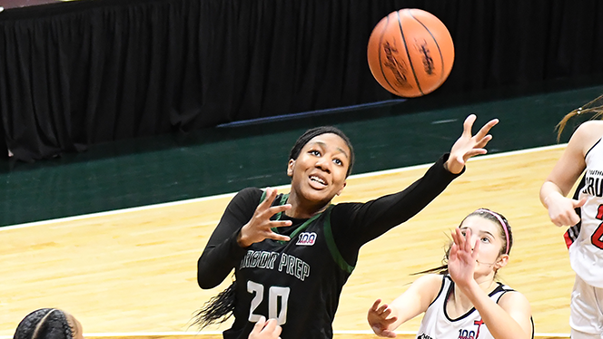 Madison Diarra pulls down a rebound for Arbor Prep.
