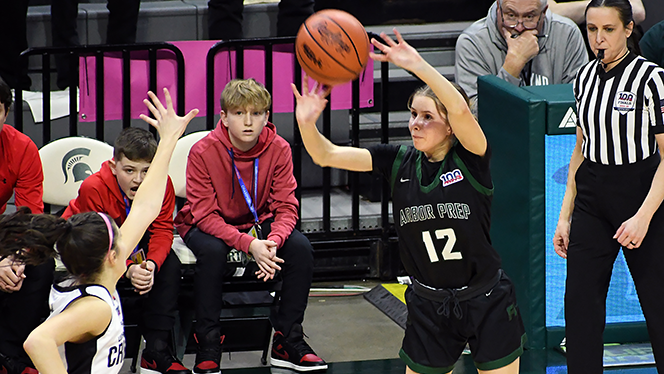 Arbor Prep senior Eliza Bush shoots the ball during the state championship game.