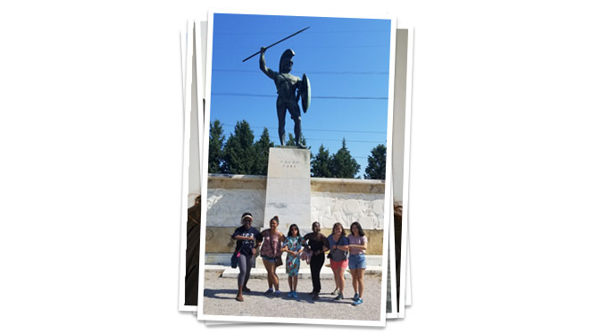 Wood and students at the site of the Battle of Thermopylae in Greece.