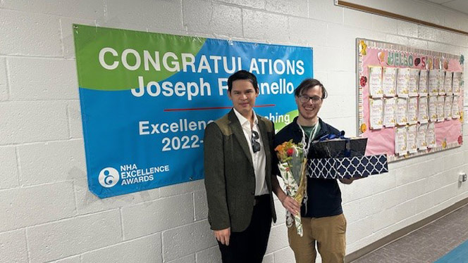 Racanello was honored as an Excellence in Teaching winner as part of the NHA Excellence Awards for the 2022-23 school year.