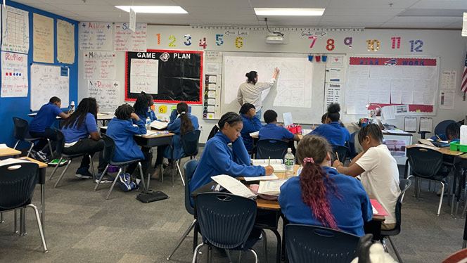 Treu, a sixth-grade math teacher, has students consider the question every day. Along with that query are real-world examples, such as using angles for parking, using decimals and estimates to make purchases, and using addition or subtraction when hitting the snooze button. By pointing out the math embedded in everyday tasks and professions, Treu gives students the answer to another often asked question – why is this important to learn?