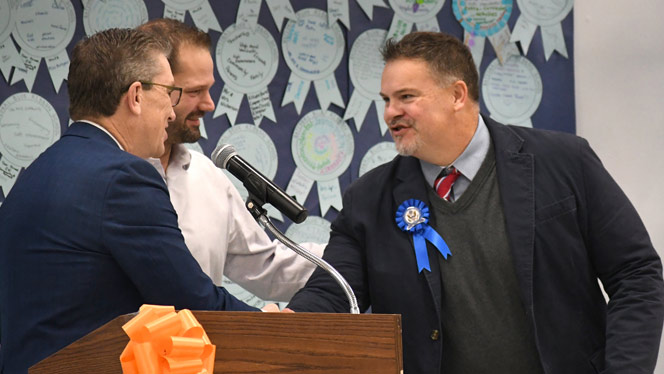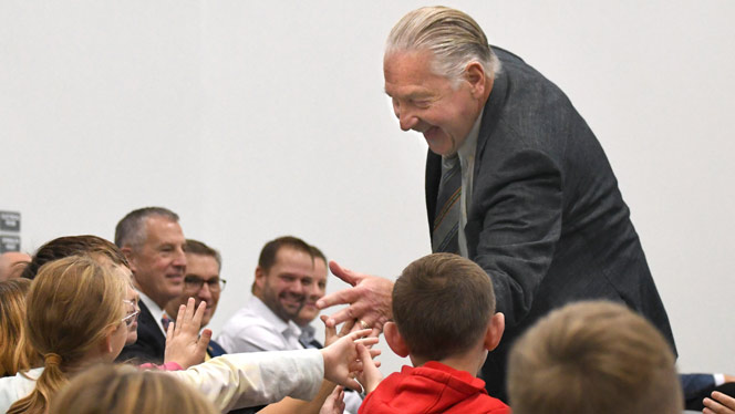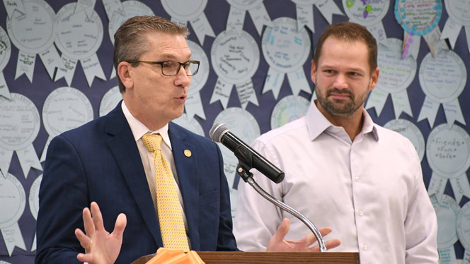 National Heritage Academies (NHA) Founder J.C. Huizenga, President and Chief Learning Officer Nick Sheltrown, and CEO Jason Pater, along with State Sen. Mark Huizenga and State Rep. Bryan Posthumus, were in attendance to support scholars and give words of encouragement.