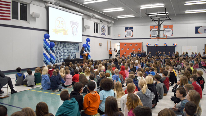 The school’s 25th anniversary has coincided with it being named a 2024 National Blue Ribbon school. Principal David Hardenburgh and the Chandler Woods staff celebrated the honor Monday, Nov. 18, with an assembly to thank the students and parents for all they have done to make the school a success for so many years.