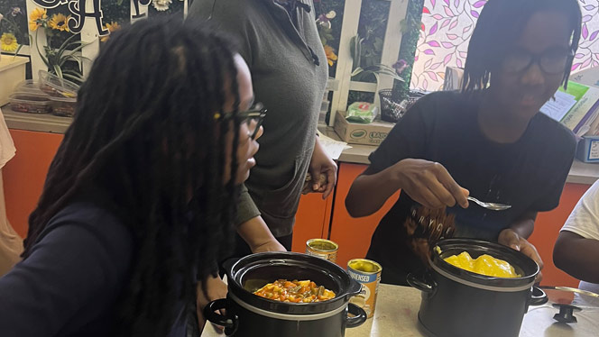 Through “Kids in the Kitchen,” students not only learn to prepare affordable, healthy meals but also gain valuable information about food choices. "While they were combining ingredients, we discussed various meats, like fish or beef versus ground turkey, and why I made certain dietary switches, such as for lower cholesterol and fat content."