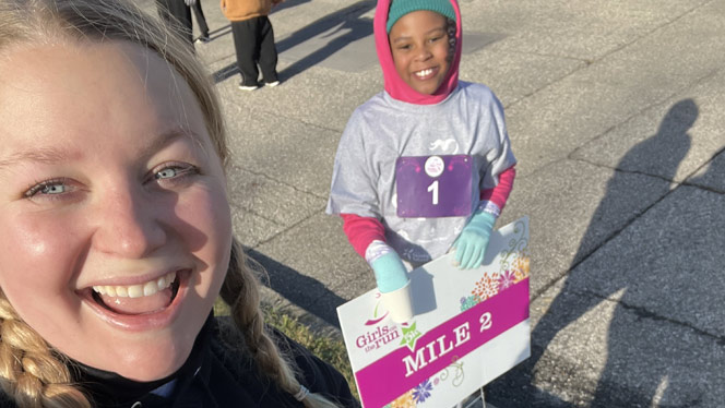 Taking part in “Girls on the Run” at Detroit Merit Charter Academy.