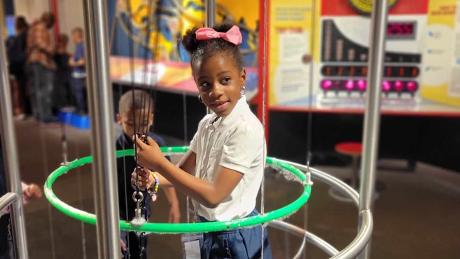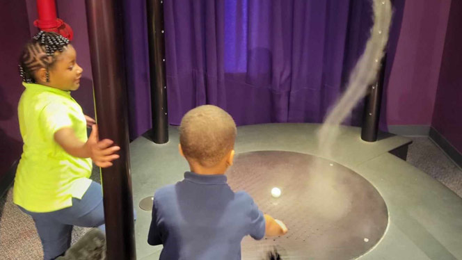 “We have a bunch of curious kindergarten and first graders, and they love science,” shared Sheila El-Amin, dean of lower elementary. “When they do science experiments, they just light up. So, we wanted to give them a museum experience without having to say, ‘Don’t touch this, don’t do that,’ so they could touch everything in there.”