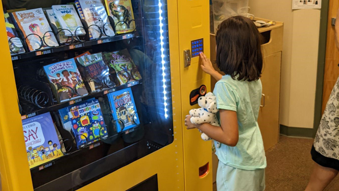 Provided by the Landmark Academy Foundation, a parent group that helps fundraise for the school, the vending machine was installed over the summer and has books for all students to enjoy.