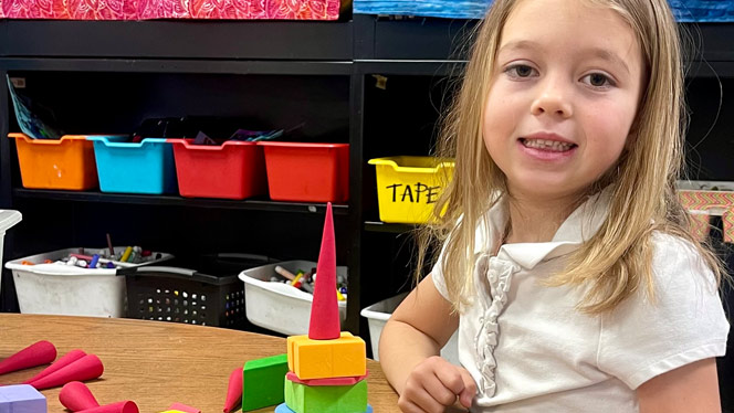 For individual activities, Kenna feels it’s important to give students options. "I feel like when kids can discover on their own, they master it better than if you're showing them what to do. It's about exploration and building those neural pathways," she remarked. Techniques like these have helped Landmark Academy outperform the local district for the past 14 years.