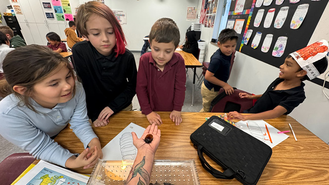 “Many students start out hesitant, sometimes even fearful of handling insects, but handling is always optional,” Morris said. “What’s been amazing to see is that by the end of the club, those same students often go from nervous to eager and ask if they can hold the insects themselves.”