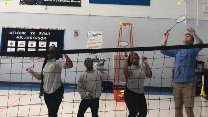 Anderson has gone to innovative lengths to motivate students, whether it’s putting together a video encouraging them during remote learning or showing them YouTube highlights of badminton stars to open their eyes to racket sports. Badminton, in particular, has become a staple for students that they can carry over to at home.
