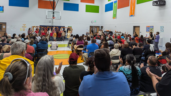 Sarah Tokazowski, a K-8 music teacher at Mountain View, shared her excitement about how the showcase turned out. "It’s two things that go really well together," she said. "We had art hung in the hallway for students who have been in art class this quarter, and for music, students in each grade performed three songs that they've been working on."