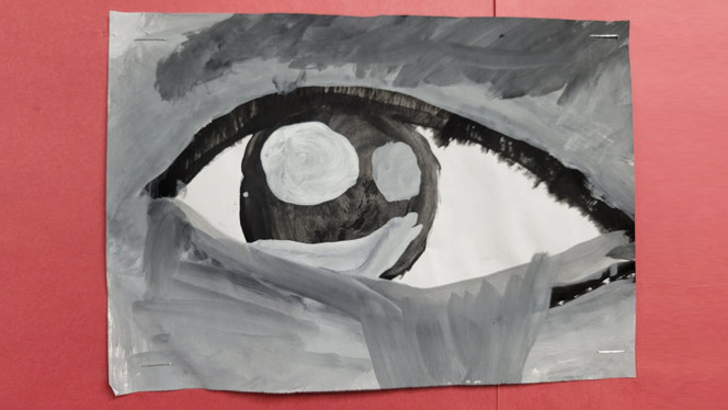 On the visual arts side, the hallways were lined with projects from various grade levels. Students from second and third grades created stained-glass-style pieces, while middle school students focused on black-and-white portraits and colorful paintings. “The middle schoolers did everything from close-ups of eyes to paintings of strawberries and sunsets,” Tokazowski noted.