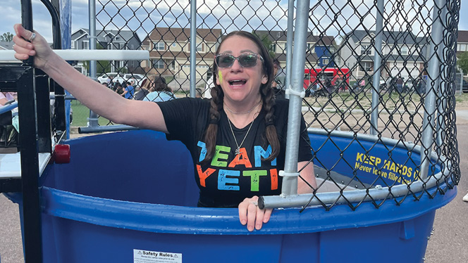 One of the day’s most popular stations was the dunk tank, giving students a chance to send their teachers and deans into a tank of cold water.