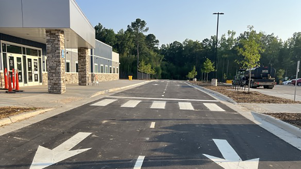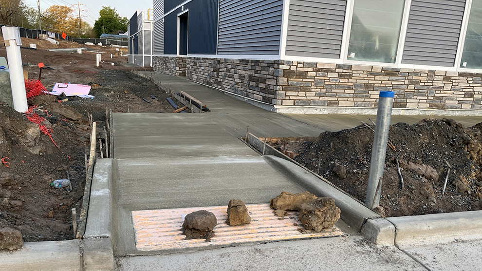 Paving and sidewalk installation continues.