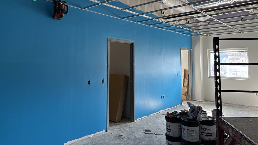 Interior walls are being painted.
