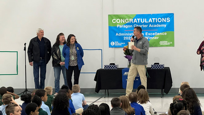 Now, four years later they have continued to satisfy the needs of any student, parent, or visitor who comes to Paragon. For their effort, they were named the winners of the Administrative Excellence award as part of the National Heritage Academies (NHA) Excellence Awards.