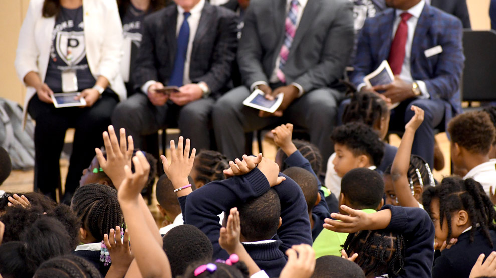 School and local leaders gathered at Pembroke Academy to celebrate the school’s 2024 National Blue Ribbon School honor, but the spotlight was turned on the school’s teachers, scholars, and their families. Principal Kinsey spoke with scholars about how the accomplishment was a testament to the dedication of everyone in Pembroke’s community.