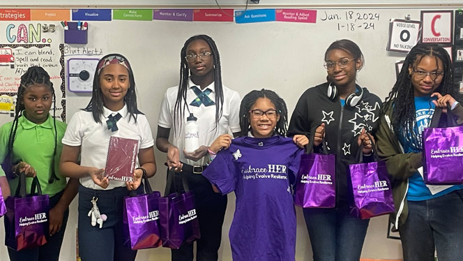 “Embrace HER” started with 15 students in fifth to eighth grade. Once the girls got to know each other and opened up after a few sessions, others wanted to join. While Christian and Turner help students build self-esteem, they also hold them accountable not just for what happens during their time in the program but also in school.