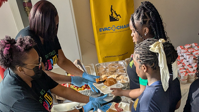 Teachers, secretaries, custodians, parents, and other family members served students with a variety of foods intended to fuel brain function, such as fresh fruit, waffles, pancakes, bacon, hard-boiled eggs, yogurt, cereal, and more.