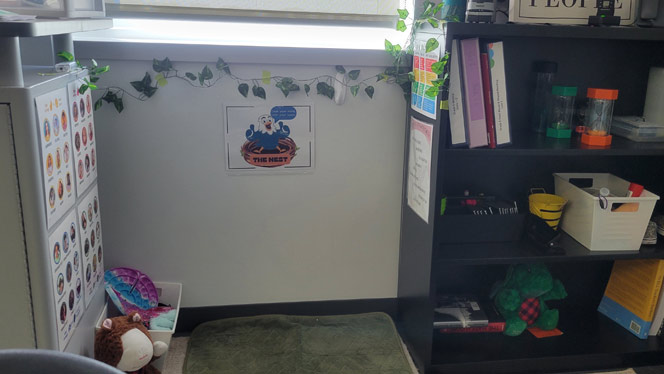 Creating an inviting and calming space for her students has also been a priority for LaCroix. “I’ve chosen neutral, calming colors and added light covers to soften the lighting. My classroom is very student-friendly, with comfy spots for calming down. I want the environment to be a place where kids feel at ease and ready to learn.”
