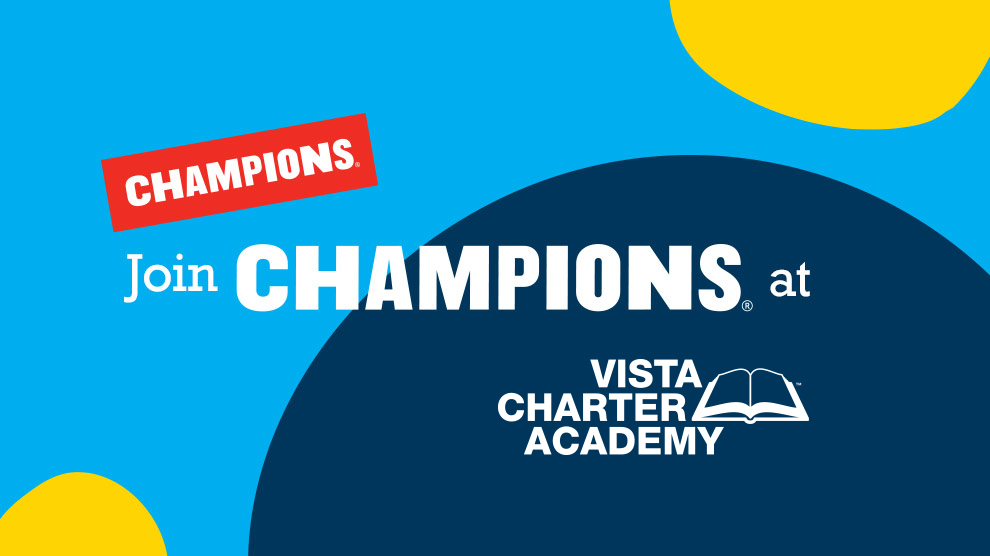 Vista Charter Academy has partnered with Champions to provide our families with their accredited Before and After School Program. Champions staff will be on-site during this time providing structure, support, and encouragement to our students. Click below to learn more about the program!Learn More About Champions