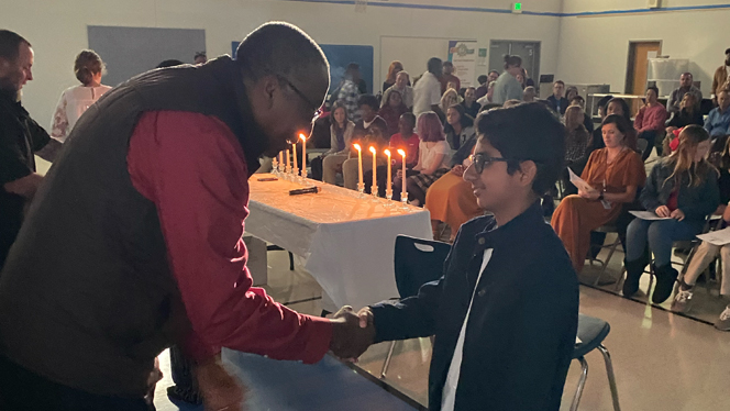 Dr. Reginald Obi, a nephrologist in Greenville, N.C., spoke to the students and their families about the importance of a strong work ethic and dedication to studying.